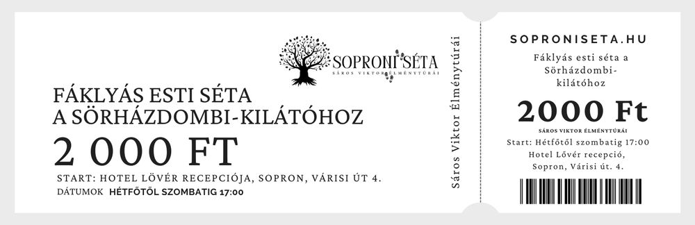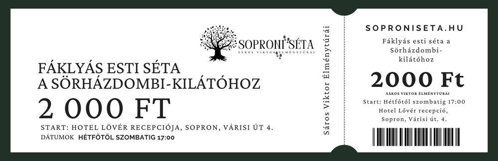 A kilátóig az erdő alatt sétálva az éjszakai erdő vadvilágáról, a kilátóból Sopron és környékéről, legendáiról, visszafelé a Lővérek városrészről. Érdemes velünk tartani, mert – gondolj csak bele- a sötétben nem fogsz önállóan nekiindulni egy ismeretlen erdőben felsétálni a kilátóhoz.